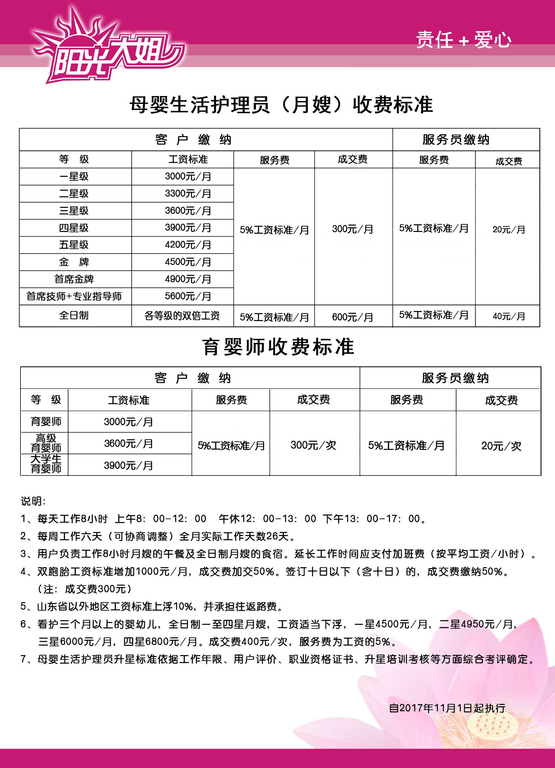 母婴生活护理员收费标准